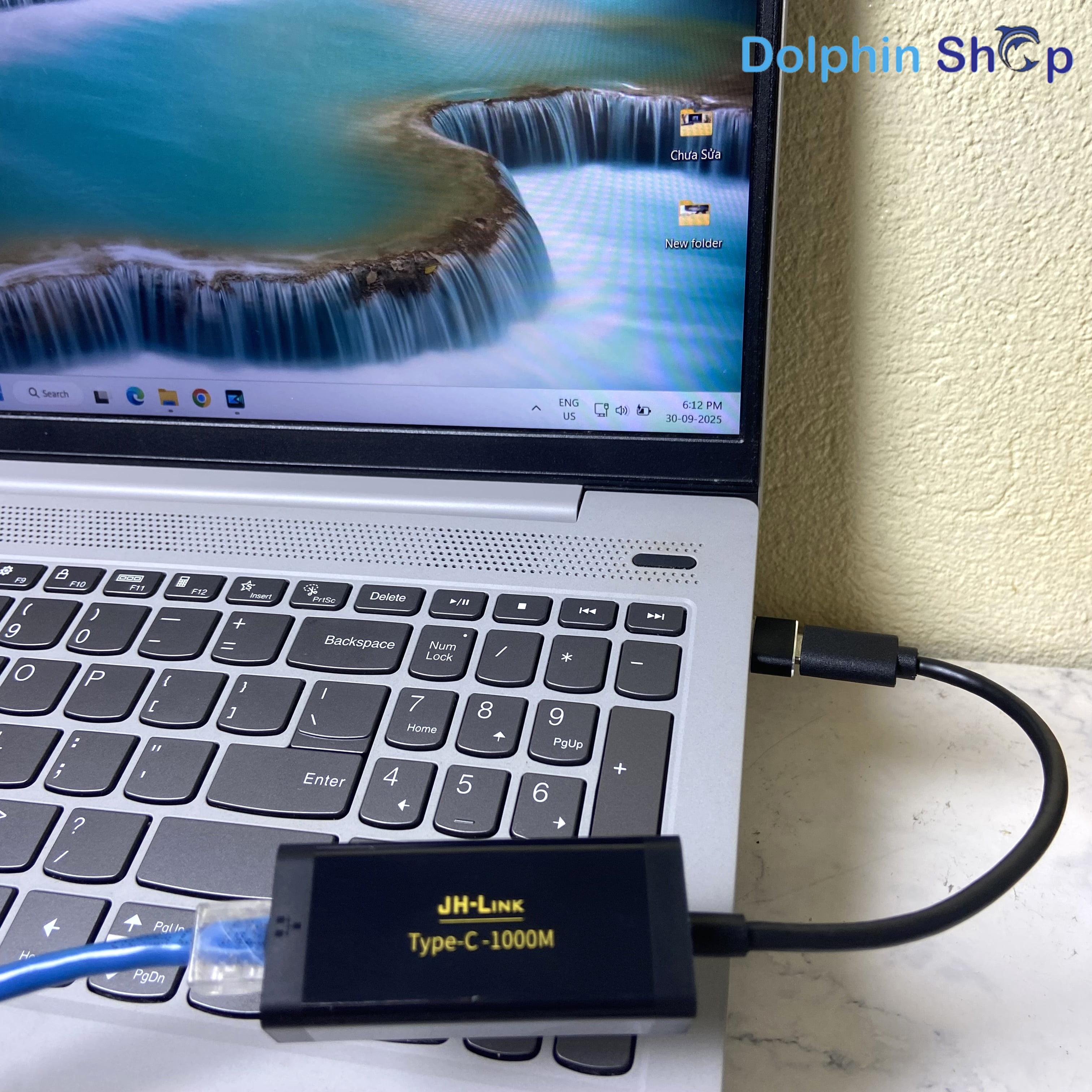 Bộ chuyển đổi mạng JH-Link Type-C to LAN 1000Mbps giúp bạn dễ dàng kết nối điện thoại, máy tính, laptop, MacBook chân Type-C, hoặc thiết bị không có cổng LAN trực tiếp vào mạng có dây ổn định. Với tốc độ truyền dữ liệu lên đến 1000Mbps, sản phẩm đảm bảo tốc độ mạng nhanh – ổn định – không giật lag, rất phù hợp cho công việc, học tập hoặc livestream.