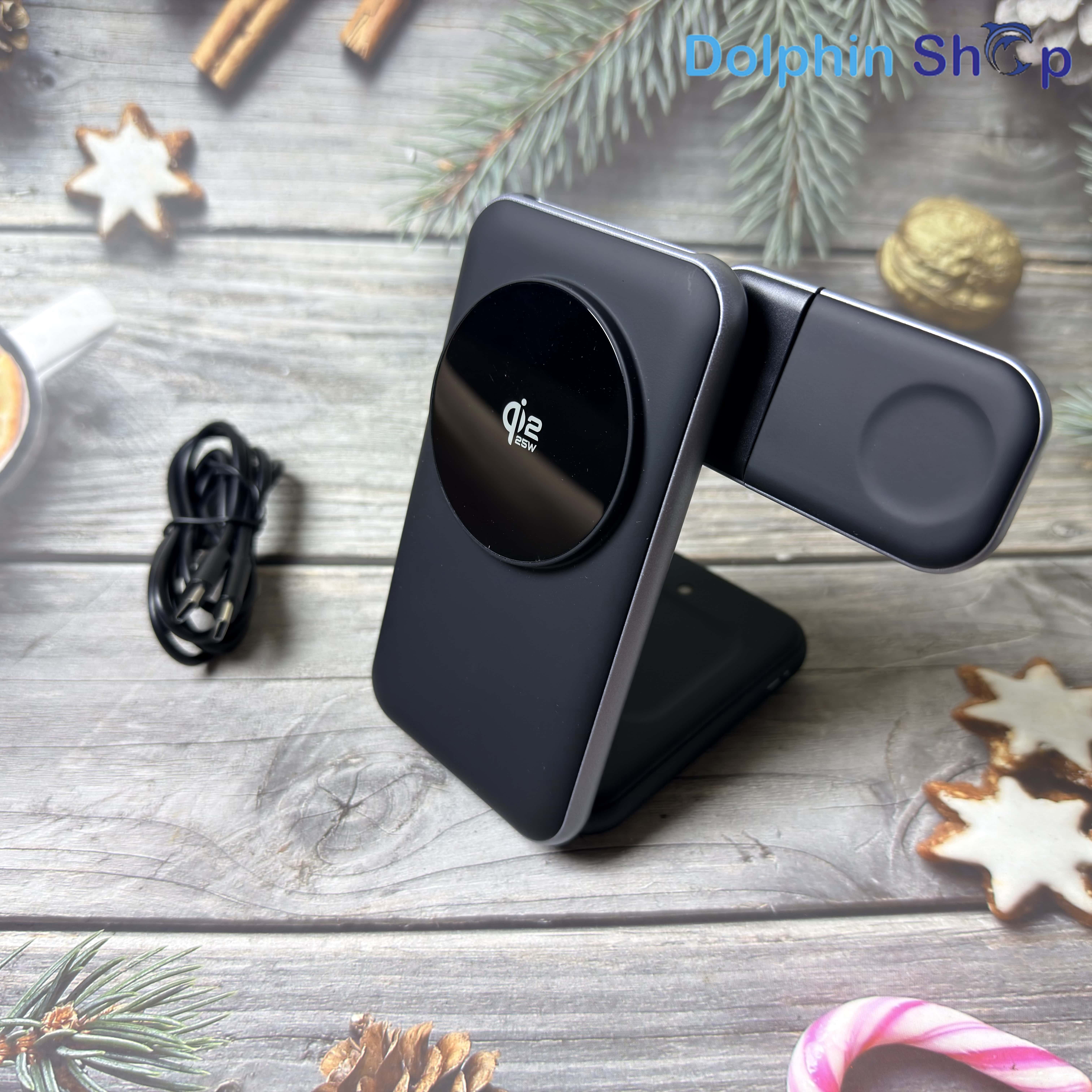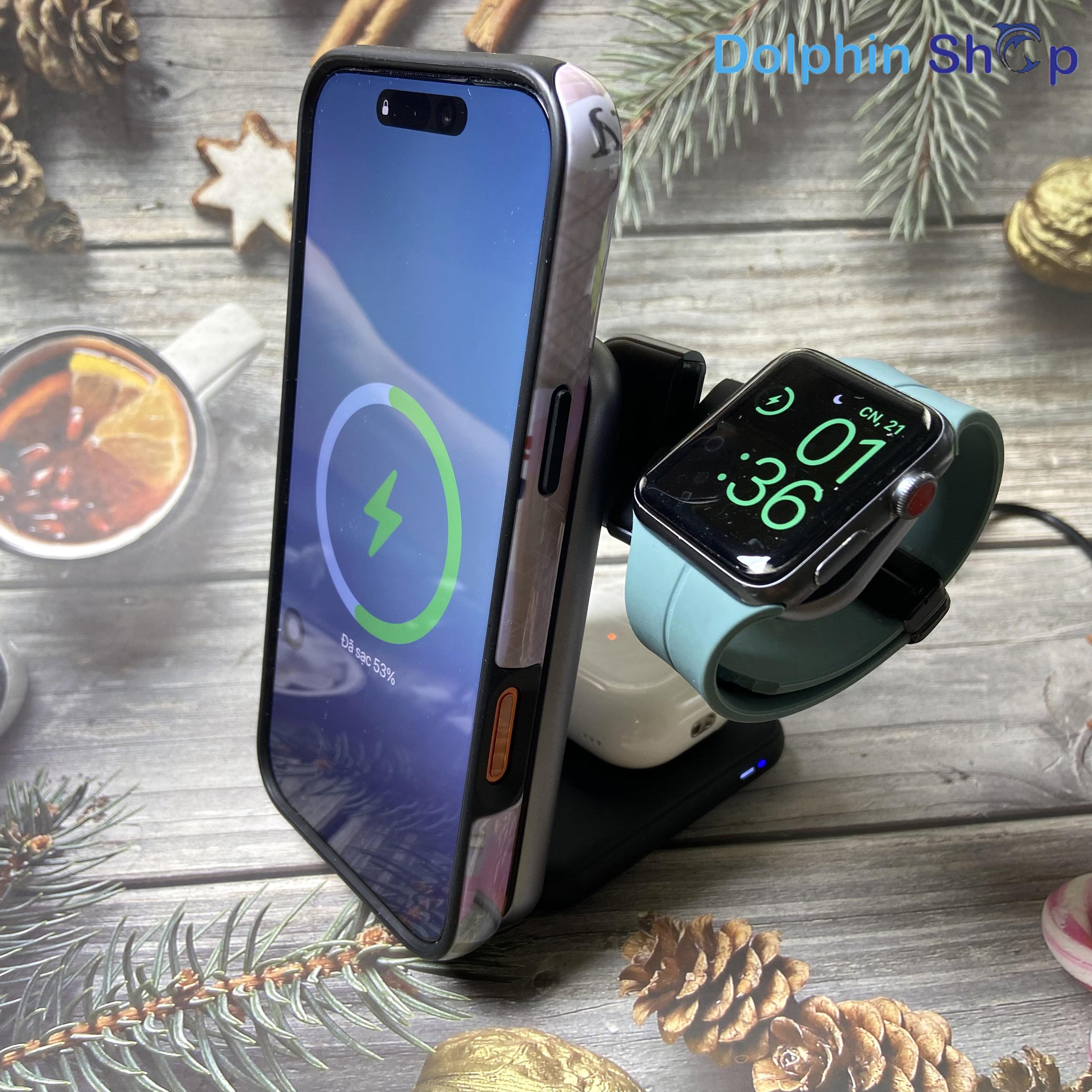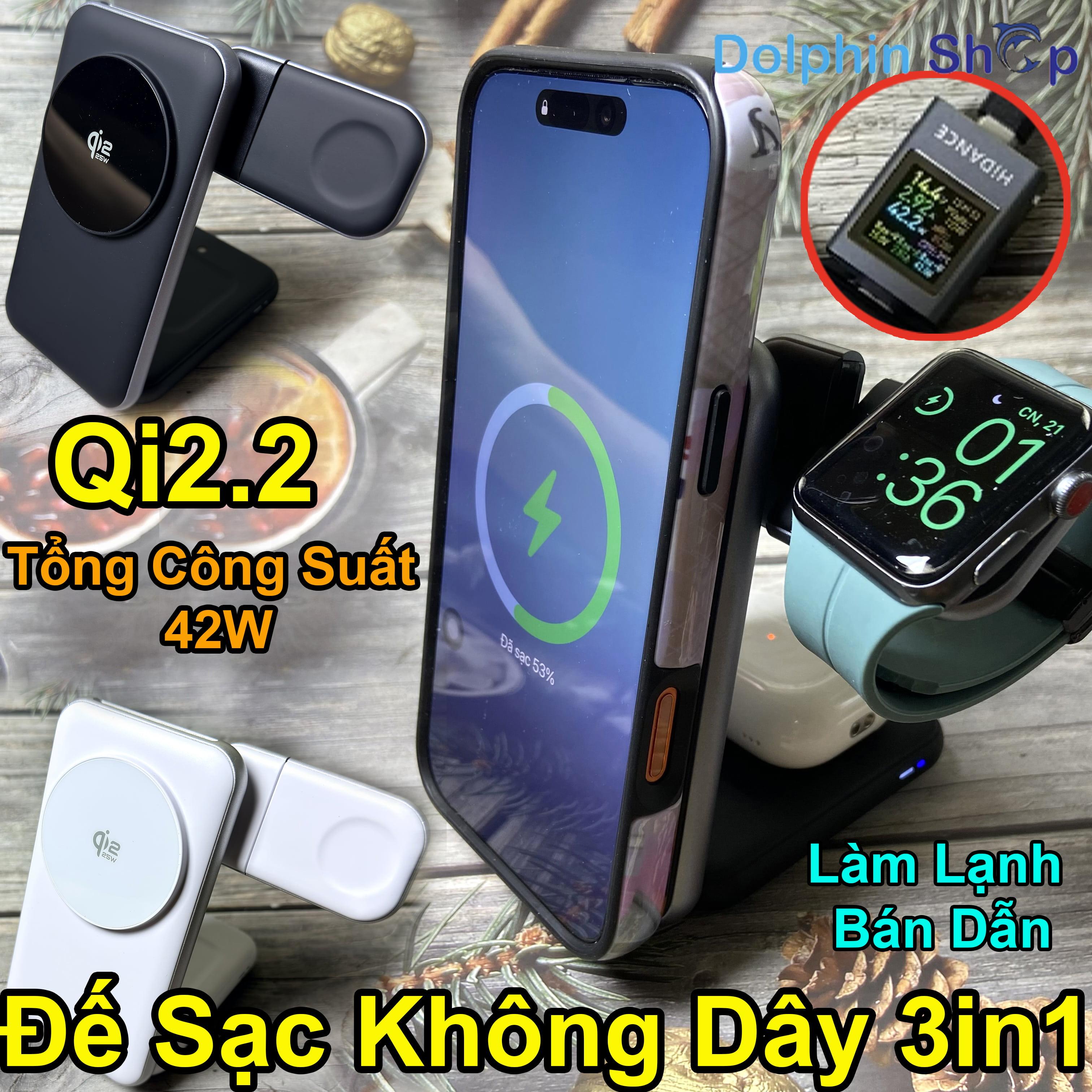 Đế Sạc Không Dây 3in1 Chuẩn Qi2.2 Sạc Nhanh, Tổng Công Suất 42W, Làm Mát Bán Dẫn, Mặt Kính Cao Cấp