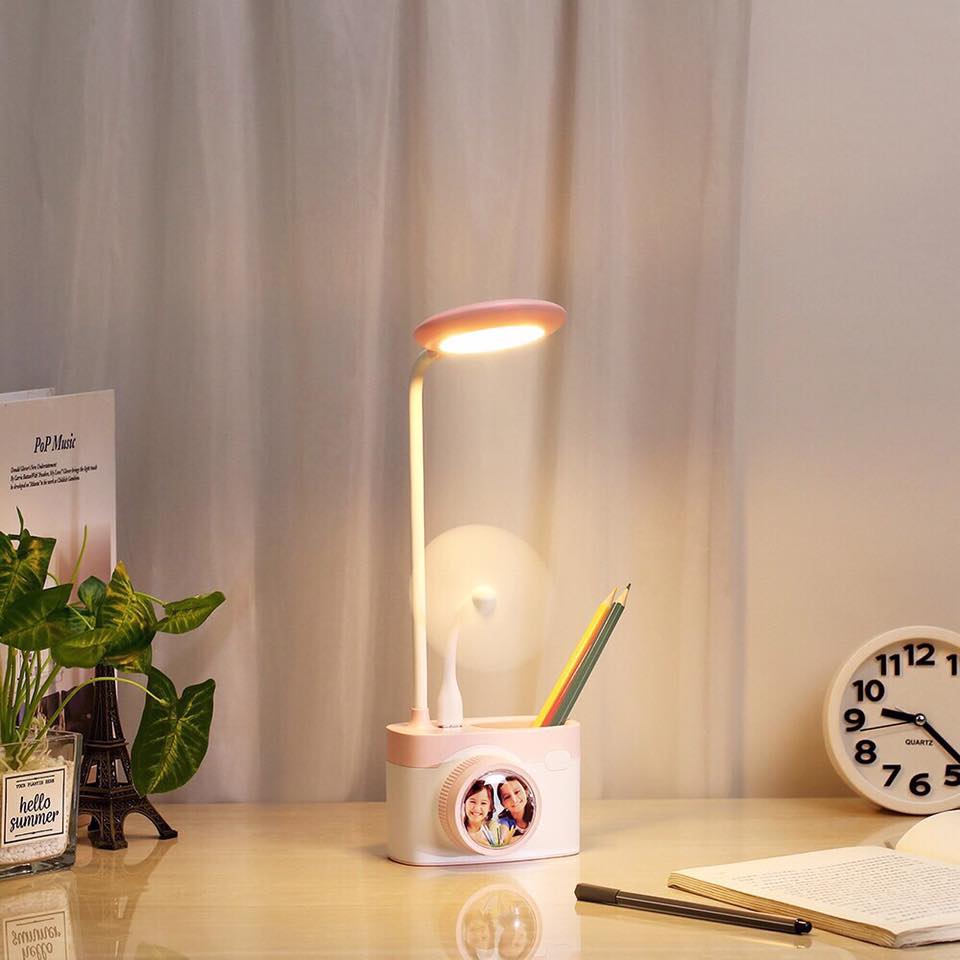Đèn Bàn Tích Điện Chống Cận Hình Chiếc Máy Ảnh Có Cổng Sạc Pin Điện Thoại