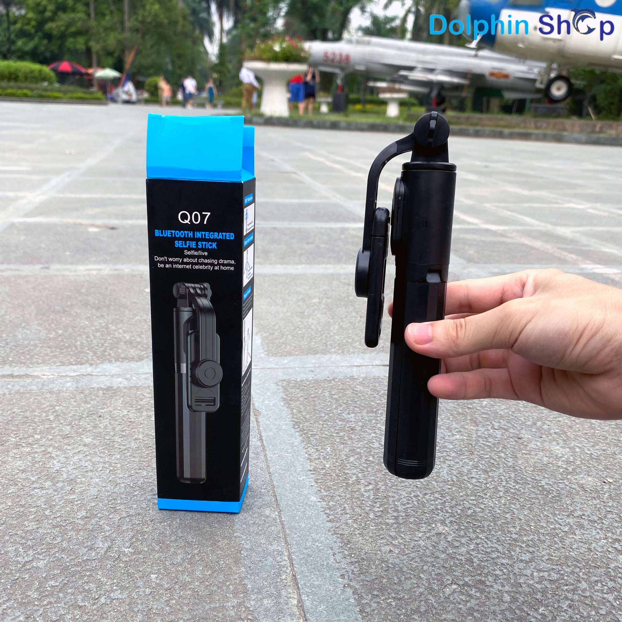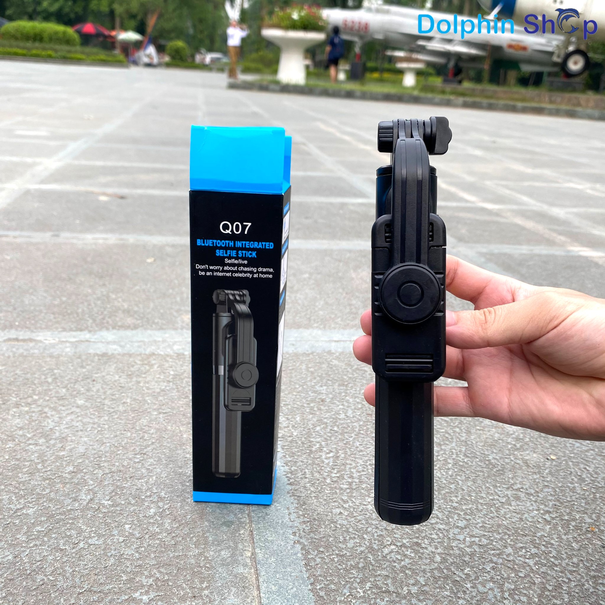 - Gậy tự sướng 3 chân Bluetooth Q07 là một sản phẩm “lai” giữa gậy tự sướng với chân chụp ảnh (tripod). Thiết kế Tripod 3 chân gọn gàng, chắc chắn, bạn không cần đến phó nháy vẫn có được 1 bức ảnh đẹp từ mọi góc độ.