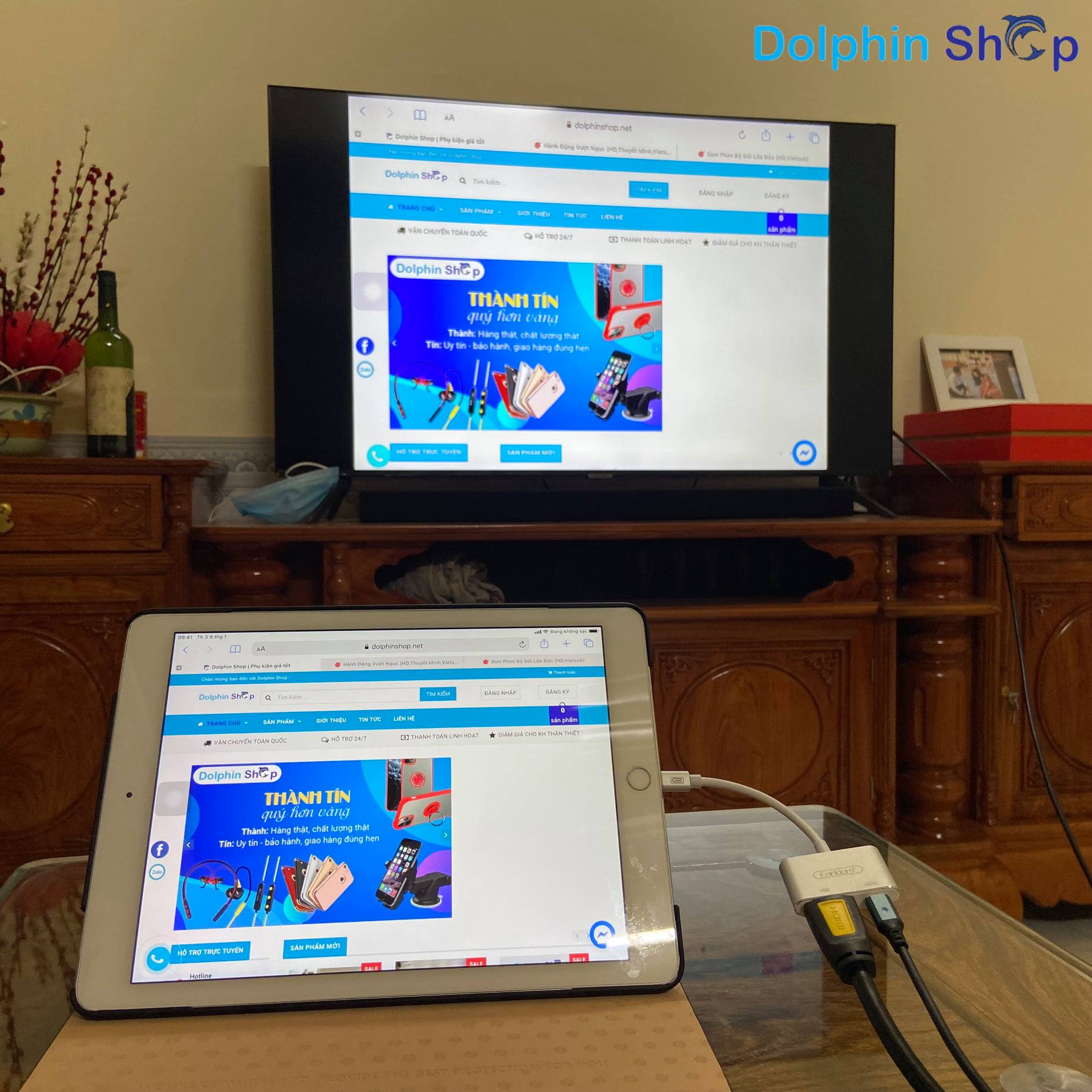 - Với thiết kế cổng nguồn Lightning ra 1 cổng HDMI và 1 cổng sạc Lightning giúp xuất video và âm thanh ra tivi/ máy chiếu.